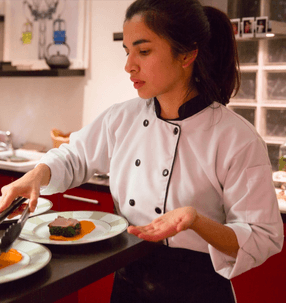 Une cheffe à domicile prépare tous les repas sur place.
